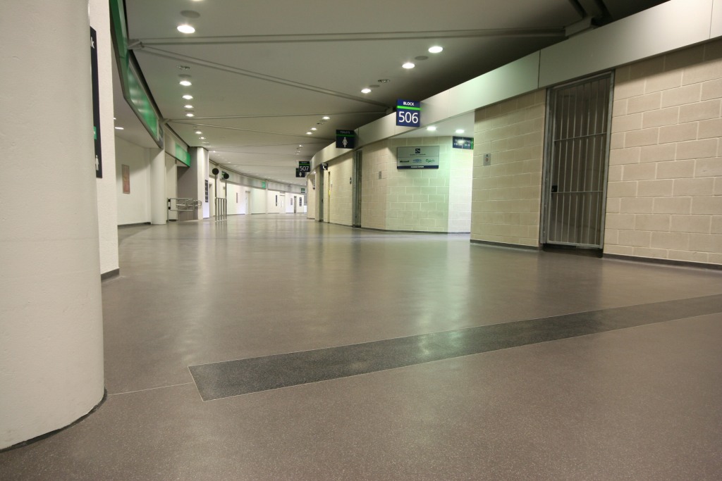 Przyjrzyjmy się więc przykładowym rozwiązaniom posadzkowym na bazie żywic, które można spotkać na największych stadionach, halach sportowych i pływalniach.