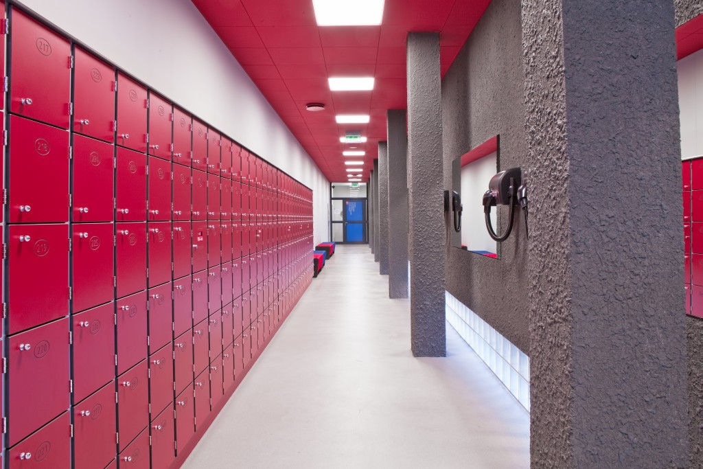 Rozwiązania na bazie żywic stosowane są w nowoczesnych obiektach sportowych nie tylko jako posadzki, ale także na ścianach i sufitach. Dla przykładu, Peran WWF, wodorozcieńczalna farba epoksydowa z dodatkiem kolorowych płatków, daje szerokie możliwości tworzenia wzorów i uzyskiwania różnorodnych efektów kolorystycznych. Ten materiał sprawdza się jako wykończenie ścian wszędzie tam, gdzie stosowane są intensywne metody czyszczenia i wymagany jest wysoki standard higieny, np. w sanitariatach, szatniach czy prysznicach. Połączenie w tym samym pomieszczeniu posadzek i powłok ściennych na bazie żywic pozwala uzyskać ciekawe efekty, np. nawiązujące wizualnie do betonu, przy zachowaniu wysokiej odporności na szorowanie.