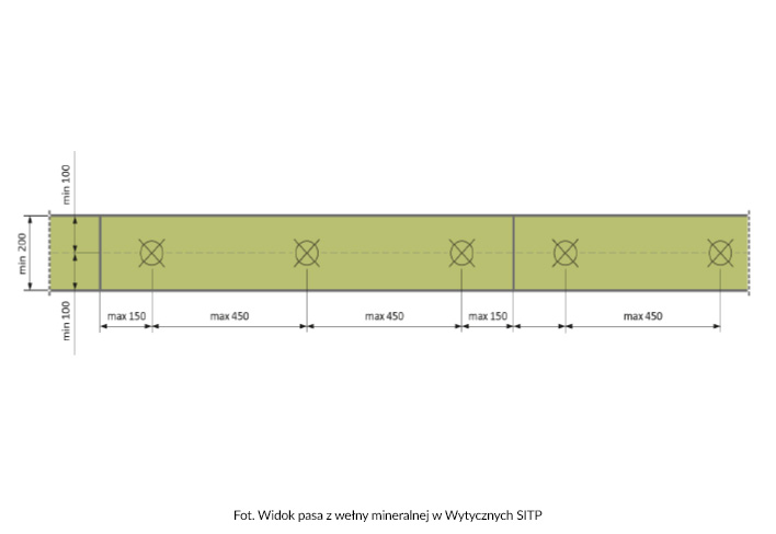 Rys. 1-3: Bariery ogniowe w formie pasów przeciwpożarowych z wełny mineralnej (MW) – usytuowanie. Wytyczne SITP WP-03:2028