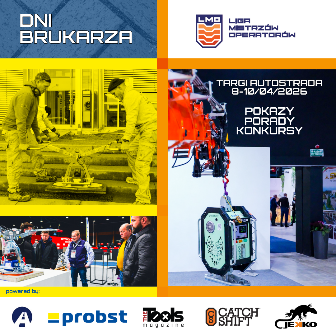 Dni brukarza to cykl pokazów i spotkań skupionych wokół sztuki układania nawierzchni brukowej. W programie odbędą się m.in. pokazy praktycznych technik układania kostki, eksperckie prezentacje maszyn oraz porady dla wykonawców. Wydarzenie ma na celu nie tylko zaprezentowanie nowoczesnych narzędzi – pokazom towarzyszy także wymiana doświadczeń między praktykami z branży.