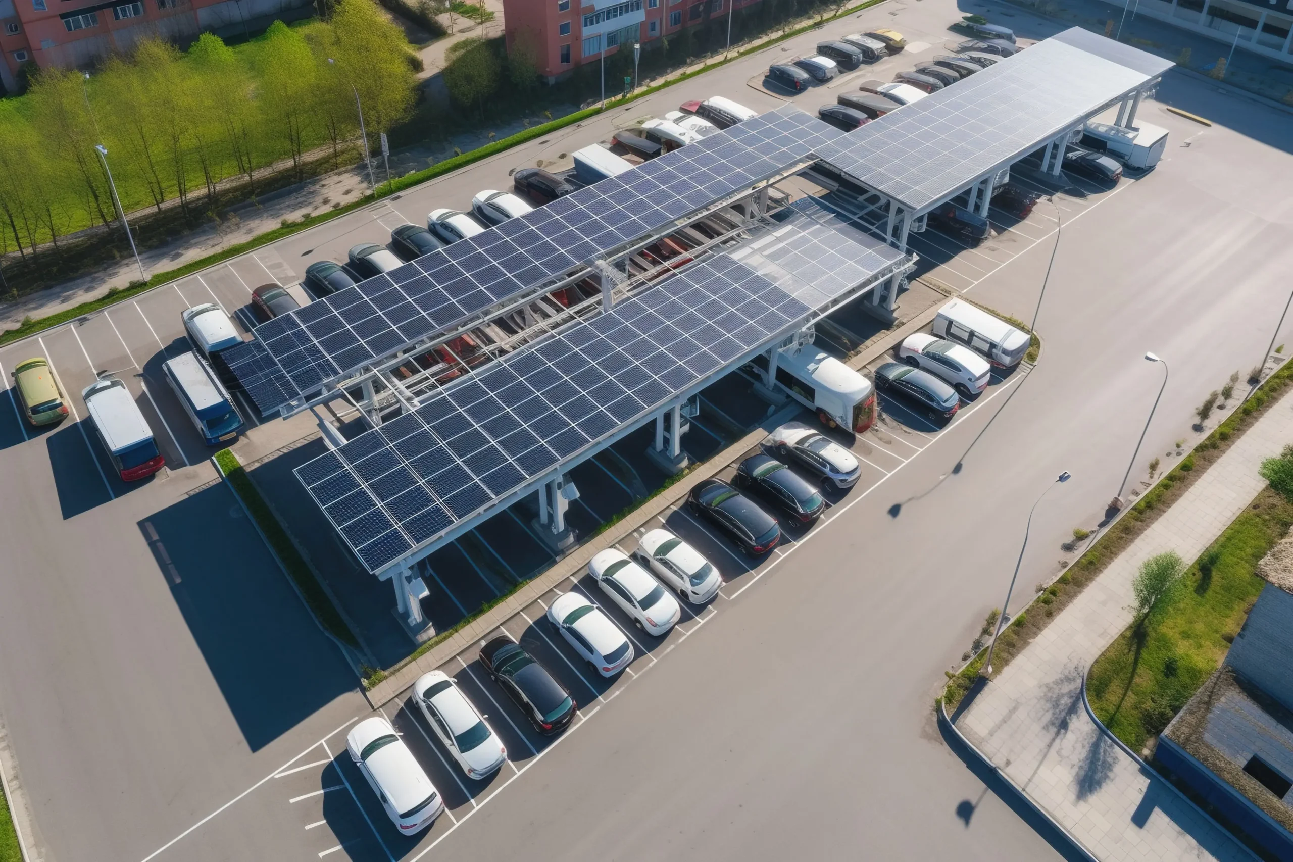 Carporty zamontowane przy siedzibie Hydro