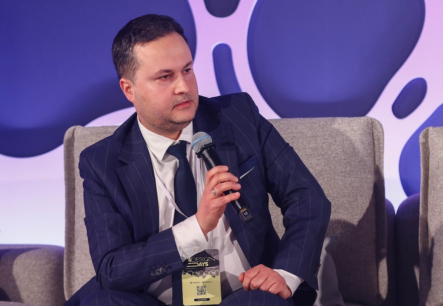Mikołaj Jarosz, Menedżer Rozwoju Rynku Saint-Gobain w Polsce, w trakcie wypowiedzi na sesji otwarcia 4 Design Days. Materiały prasowe: Grupa PTWP.
