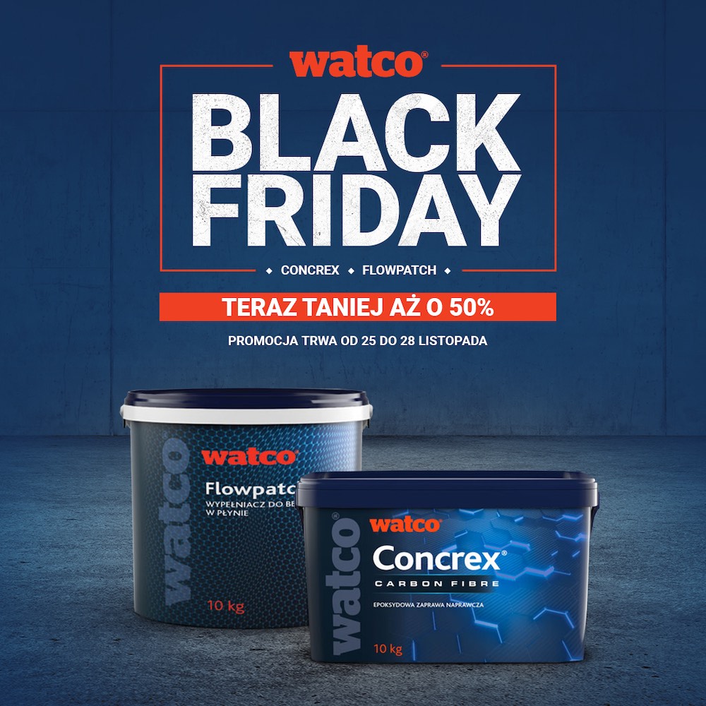 O powierzchnie magazynowe oraz produkcyjne trzeba dbać przez cały rok. Szczególnie ważne jest przygotowanie posadzek na zimę – aby zapewnić bezpieczeństwo i komfort pracy. Brytyjska marka Watco, producent bestsellerowych preparatów do napraw i malowania posadzek betonowych podpowiada, jak to zrobić sprawnie i bezproblemowo. A z okazji Black Friday wprowadza zniżkę na najlepiej sprzedające się produkty do posadzek betonowych. Od piątku do poniedziałku (25-28 listopada) można kupić je w cenie niższej aż o 50%.