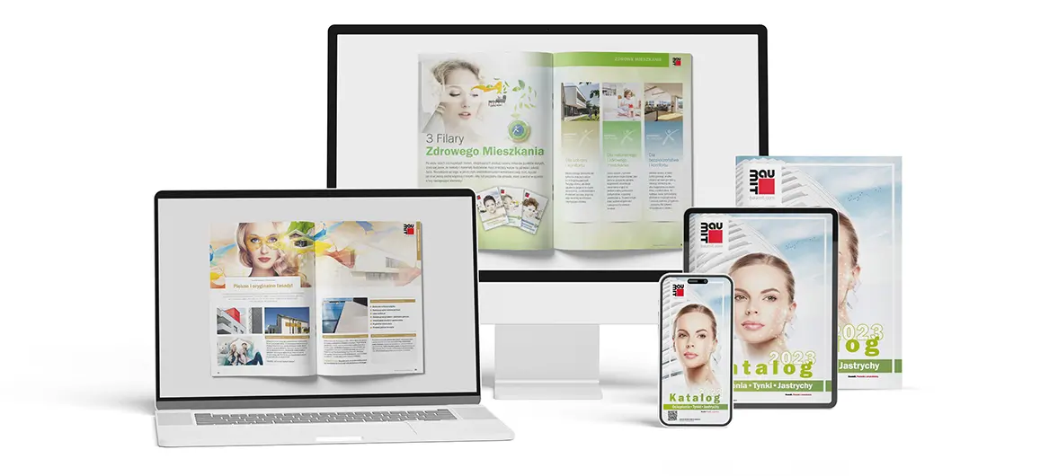 do wykonania trwałego, efektywnego oraz estetycznego systemu ociepleń oraz opis szeregu rozwiązań dopasowanych do indywidualnych potrzeb), - „Wnętrze jest ważne” (44 strony, z której można dowiedzieć się, jakie rozwiązania systemowe wybrać, aby zapewnić w pomieszczeniach zdrowe powietrze i wyeliminować